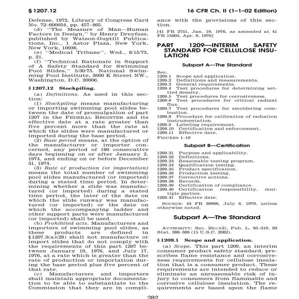 This part 1209, an interim consumer product safety standard, prescribes flame resistance and corrosiveness requirements for cellulose insulation that is a consumer product. These requirements are intended to reduce or eliminate an unreasonable risk of injury to consumers from flammable and corrosive cellulose insulation.