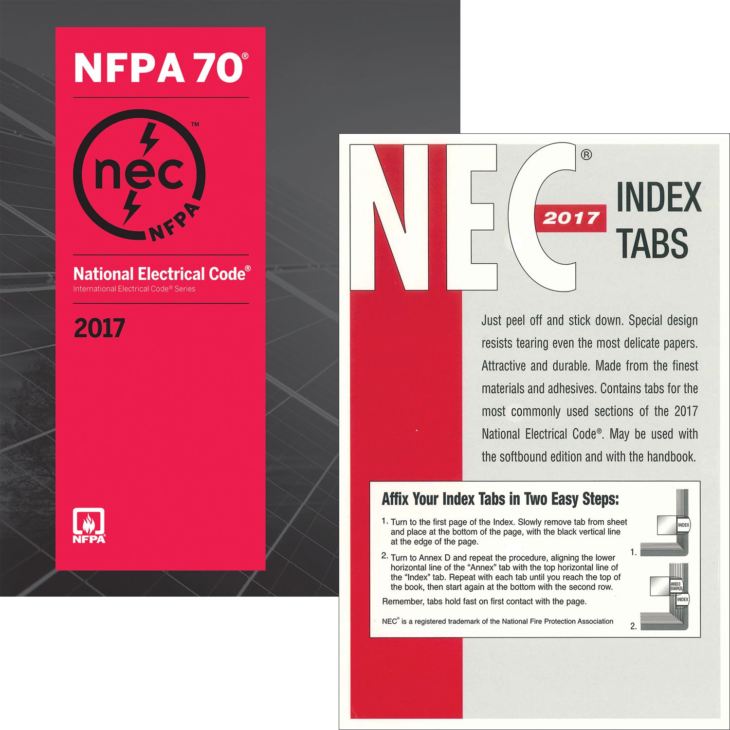 This combo includes the 2017 National Electrical Code (NEC) and the 2017 NEC Tabs.