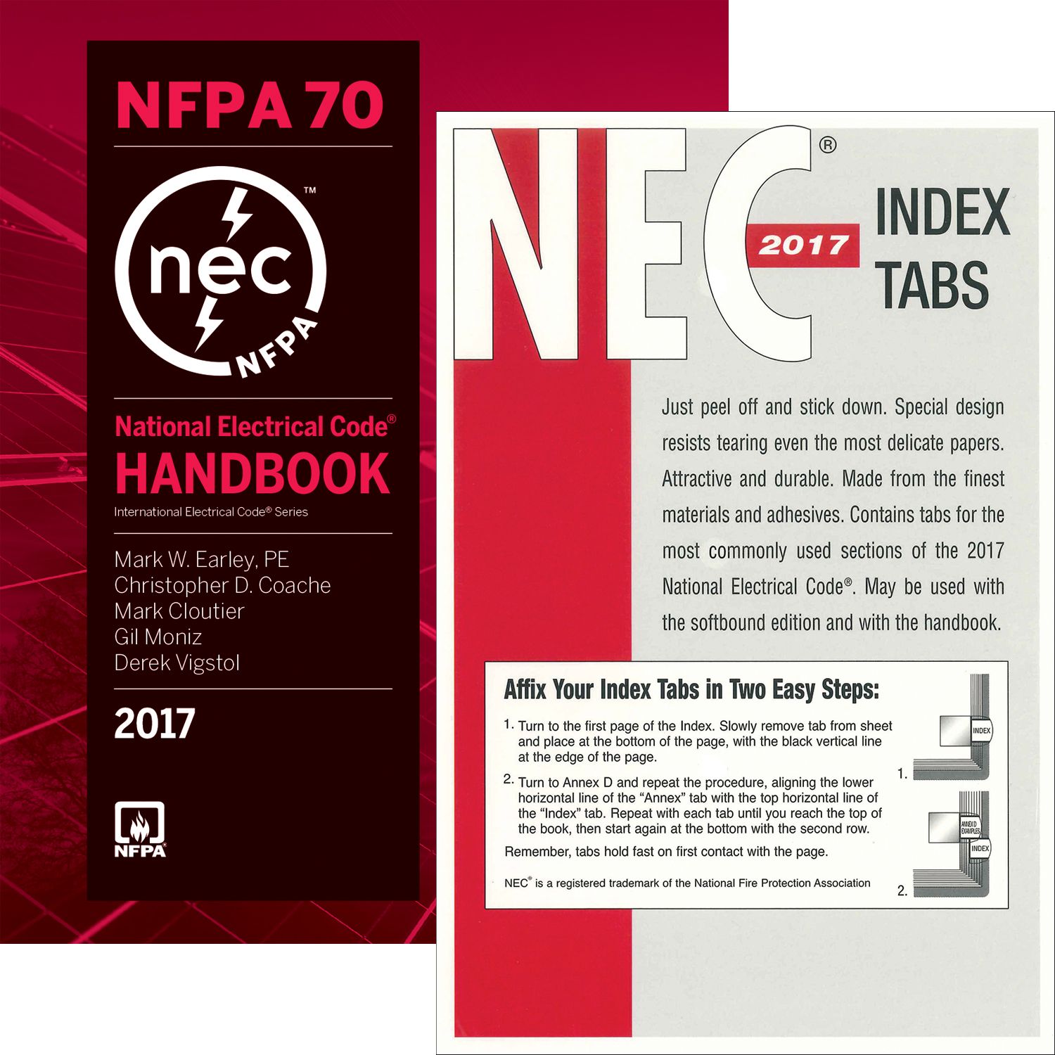 This combo includes the 2017 National Electrical Code (NEC) Handbook and the 2017 NEC Tabs.
