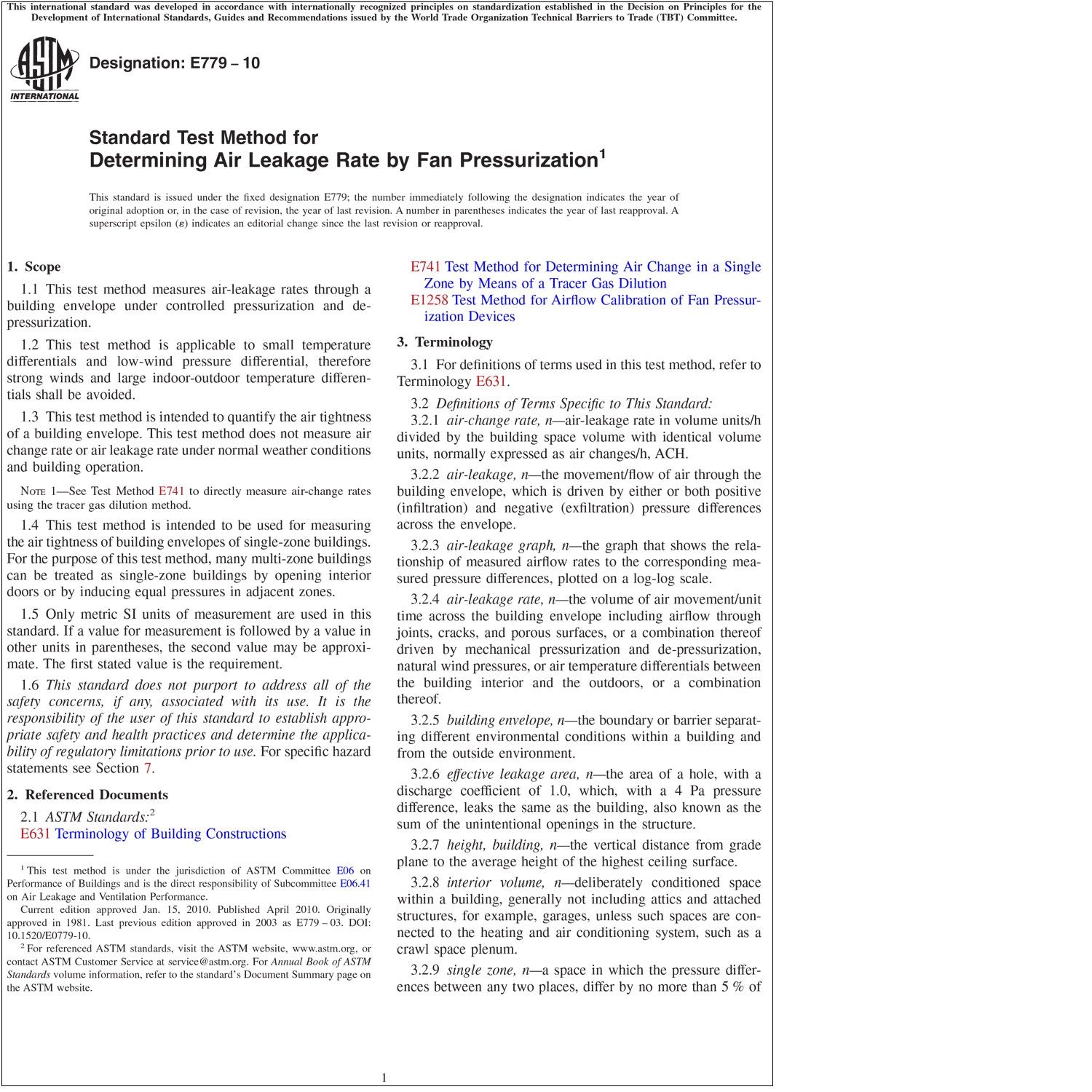 Note 1—See Test Method E741 to directly measure air-change rates using the tracer gas dilution method