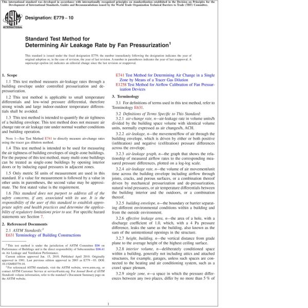 1.3 This test method is intended to quantify the air tightness of a building envelope. This test method does not measure air change rate or air leakage rate under normal weather conditions and building operation.