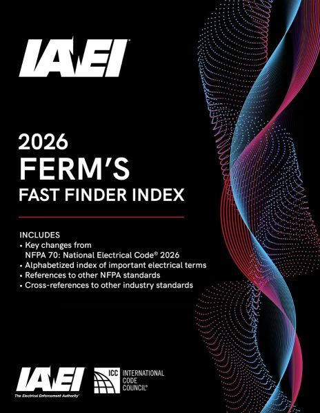 As electrical professionals, we know that time is everything—especially when you're navigating the National Electrical Code. That’s why IAEI is proud to present the Ferm’s Fast Finder Index to the 2026 NEC, a powerful tool designed to help you locate code articles quickly and with confidence. Whether you're in the field, in the classroom, or deep into plan review, this alphabetized index streamlines your workflow and ensures accuracy. It’s built with usability in mind, using terms and phrases you actually search for, so you can stay productive without flipping through hundreds of pages. It’s a game-changer for anyone who works with the NEC